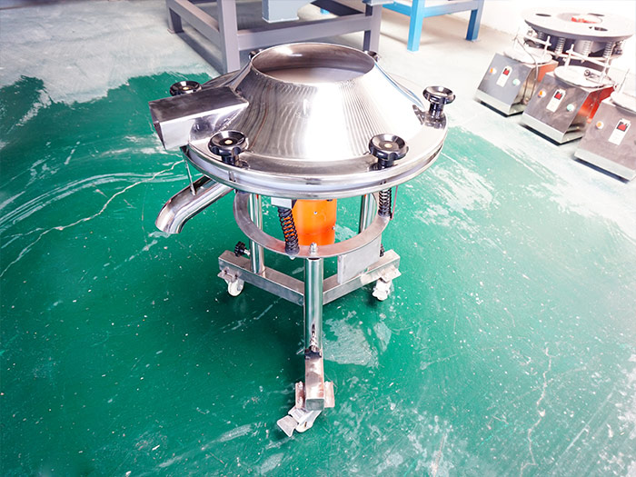 450過濾篩——直徑為450mm,由電機驅(qū)動重錘激振,篩體產(chǎn)生水平、垂直、傾斜的三次元運動,使含水物料在篩網(wǎng)上被拋起并由中央向外旋轉(zhuǎn)擴散到出料口排出,含水物料在篩網(wǎng)上面的運動中,細小顆?;蛞后w透過篩網(wǎng),通過選擇安裝相應的篩網(wǎng)和篩網(wǎng)層數(shù)使物料完成篩選分級或過濾,分選出的物料由各自的出料口分別自動排出。是一臺單層篩分和過濾使用的振動篩,被各個廠家和用戶叫做液體專用振動篩,因為機身小的原因,所以它的處理量不多,適用于小產(chǎn)能要求。
