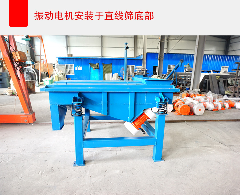 當(dāng)然,也可以通過減少直線篩的篩框等整體寬度來解決這個問題,但這樣會造成設(shè)備的有效篩分面積減少,導(dǎo)致處理量變小,影響篩分效率、生產(chǎn)進(jìn)度,所以可以選擇將振動電機(jī)安裝在設(shè)備的底部,以此來減少直線篩的整體寬度,這樣即保證了設(shè)備的有效篩分面積,不影響處理量和篩分效率,也大大減小了直線篩設(shè)備的整體寬度。