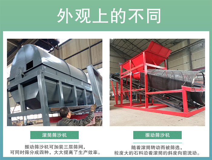 振動(dòng)篩沙機(jī)與滾筒篩沙機(jī)有什么不同呢?