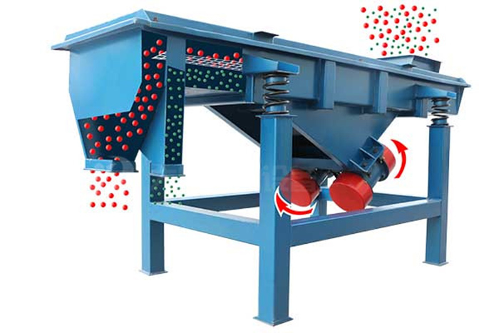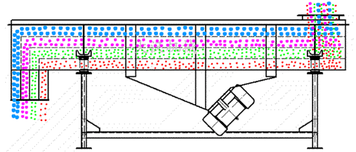 直線型振動篩兩電機(jī)軸相對篩面有一傾角,在激振力和物料自重力的合力作用下,物料在篩面上被拋起跳躍式向前作直線運(yùn)動,從而 達(dá)到對物料進(jìn)行篩選和分級的目的??捎糜诹魉€中實現(xiàn)自動化作業(yè)。