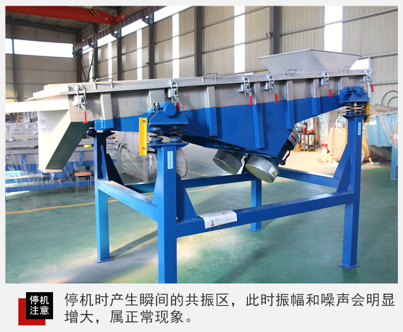 6、設(shè)備在停機(jī)時(shí)產(chǎn)生瞬間的共振區(qū),此時(shí)振幅和噪聲會(huì)明顯增大,屬正?,F(xiàn)象,設(shè)備在開停機(jī)前,篩面上不得有存留物料,篩網(wǎng)需經(jīng)常檢查是否張緊、破損,如有破損要即時(shí)更換。