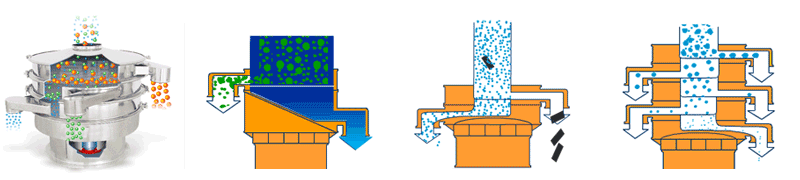 1、可以準(zhǔn)確地去除過(guò)大的污染物,可以安裝1到5層篩網(wǎng),產(chǎn)生2到6個(gè)產(chǎn)品分級(jí)。
